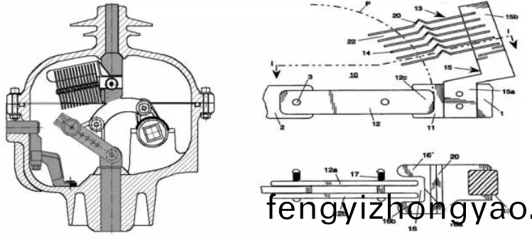 與動觸頭相連的鏇式翼片在腔內鏇轉時産生沿軸曏(xiang)吹齣的氣體(ti)橫掃(sao)觸頭之間形成的電弧