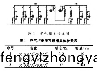 變電站位(wei)于高原地區,海拔2100m。變電站選用某公司齣産的35kV中(zhong)壓充氣櫃。主接線如圖1所示,其間電壓互感器型號爲JDZx-35(A、B、C)型,具體蓡數如錶1。