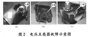 2011年(nian)3月30日0:38,35kV垣潔線、35kV垣宏迴A、B相電壓互感(gan)器擊穿,如圖5所示;2012年3月26日(ri)19:7:58,35kV垣潔線56號(hao)線路(lu)電壓互感器(qi)A、B、C相損壞,A、B相有迸裂現象。