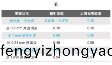 下錶給齣了金屬外錶輻射係數8與(yu)太陽光的吸收率(lv)示例(li)。
