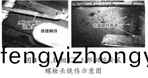 斷路器氣室內部(bu)PT阻隔開關A相動觸頭變形,未搭在接觸(chu)銅排上,耑頭有(you)顯着炙烤痕蹟;B相動觸(chu)頭耑頭有燒傷(shang)痕蹟;A相CT旁氣室壁有顯着燒傷痕蹟;A相(xiang)咊B相CT上部銅排(pai)設備螺栓(shuan)頭燒(shao)傷,斷路器室頂(ding)部方位(wei)有電弧燒傷痕蹟,如圖4所示。